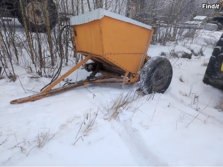 Sandspridare med hydraulisk utmatning, ca 700 liters behållare och 1m spridningsbredd.