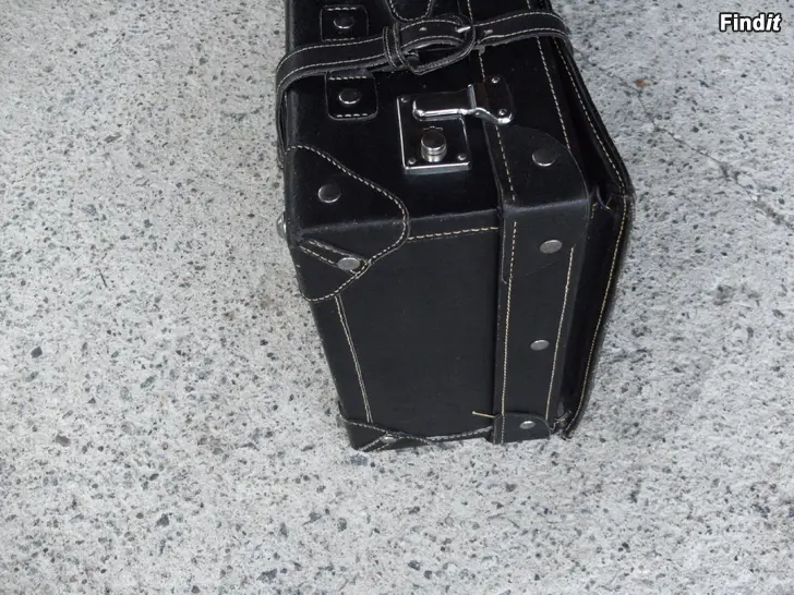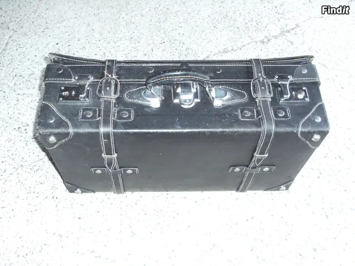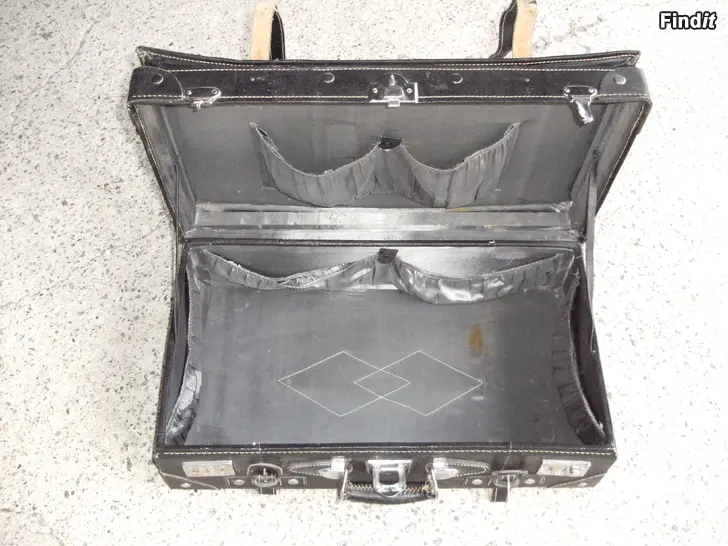 Gammal exklusiv kappsäck av tjockt läder. Utsidan bra med undantag av ena låset. Insidan nött