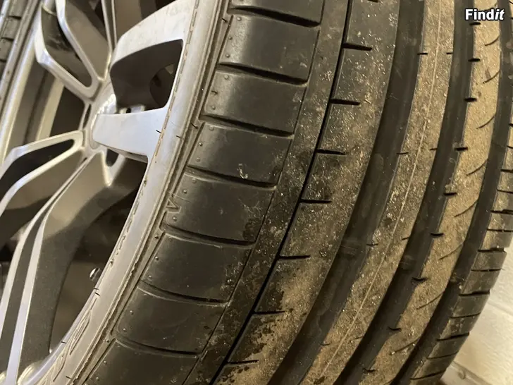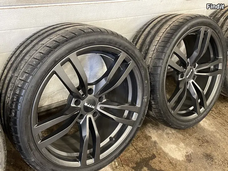 Fälgar Nitro 9x19’, et 20, bultmönster 120,6x5. Passar tex. Chevrolet och andra USA-bilar, passar även VW och BMW med rätt bultar. Däck Falken 275x30 19 i bra skick.