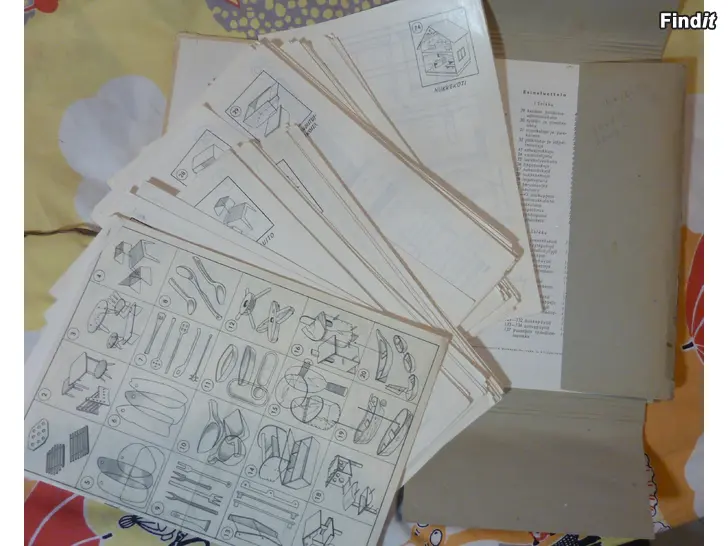 myyn kuvissa näkyvät vanhat kansiot, joissa vanhoja puukäsityöpiirustuksia. en tiedä onko kaikki tallella. kunto selvinnee kuvista. hinta 20 euroa/kansio. kulkeutuvat lähialueelle samaan hintaan. myös nouto sopii.