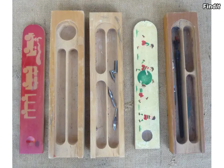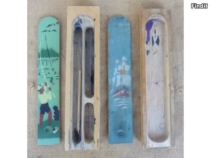 myyn kuvissa näkyvät vanhat puiset penaalit. kaikki kerralla, ja yhteishinta VAIN 30 euroa. kulkeutuvat lähialueelle samaan hintaan. voin myös lähettää, ja noutokin sopii.