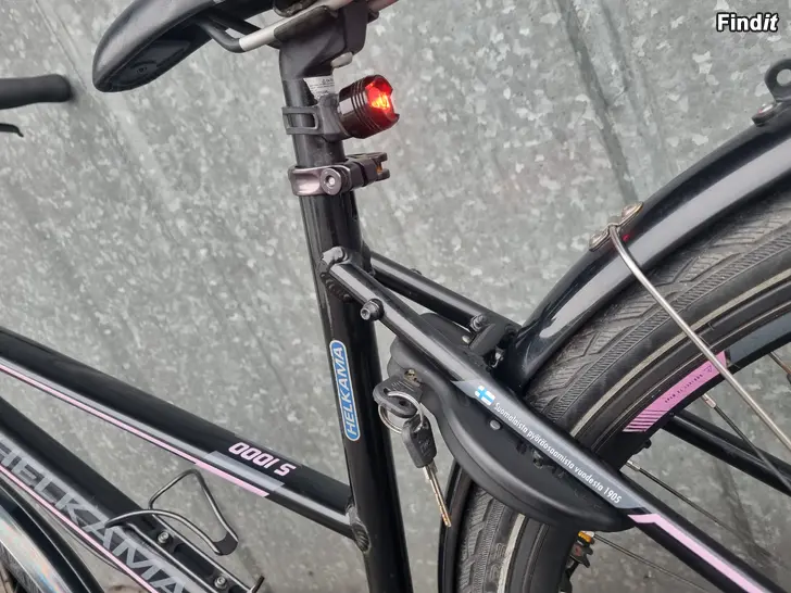 Cykeln är i gott skick, allt fungerar korrekt, lås + två nycklar.