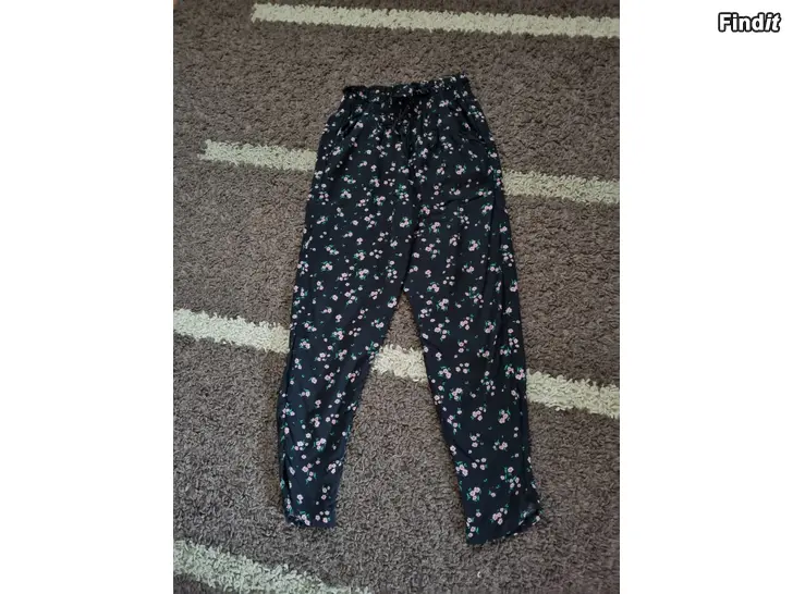 Svarta tunna festbyxor med blommotiv storlek 134