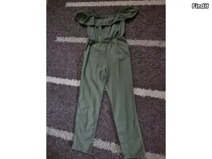 Olivgrön byxhalare med volang storlek 134