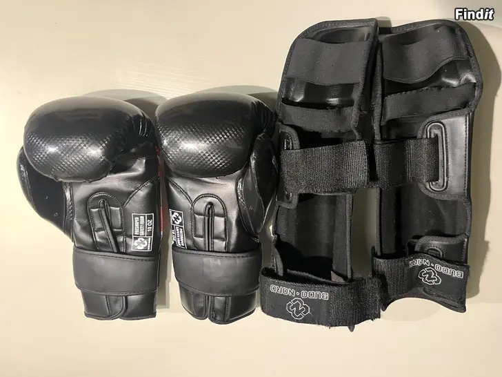Säljes som paket. Fräscha boxningshandskar och benskydd. Märke: Budo Nord. Junior, storlek S. Finns i Jakobstad.