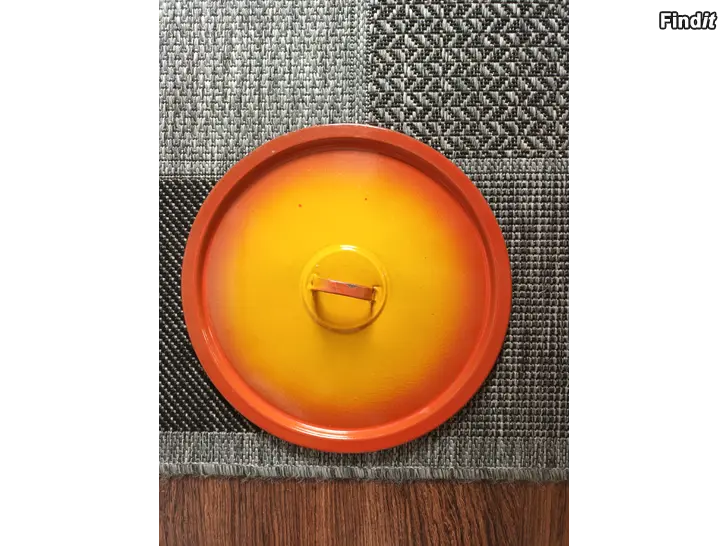 Myydään hyväkuntoinen vanha punakeltainen kattila. Mitat halk.33 cm kork.17 cm.