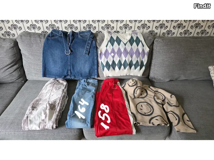 Klädpaket st 158/164, lite varierande skick, men inga stora fel. Finns i Kvevlax, kan föras till Vasa på tisdagarna och torsdagarna på kvällen. Mobilepay eller kontanter. Postas ej.
