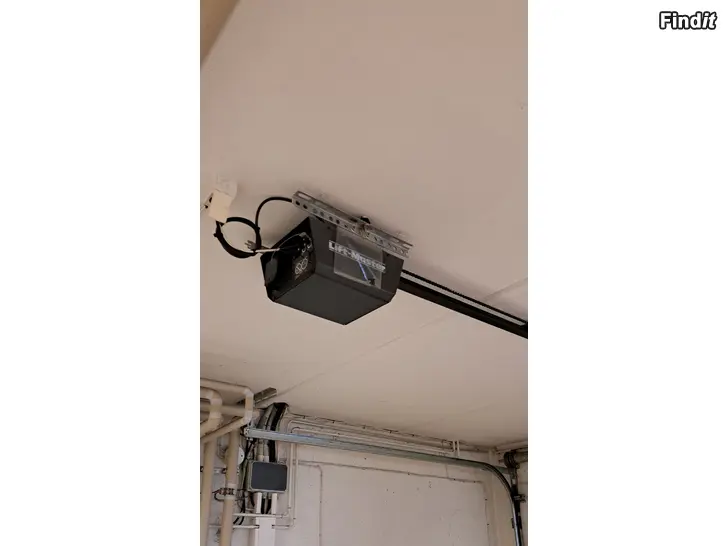 Dörrarna är 3 meter breda och 2,15 höga. Flera fjärrkontroller finns. Avlastningsfjädern till ena dörren är sönder och därför byter husbolaget ut båda dörrarna. Pris 400 + 600 €. Får avhämtas från Brändö när montören är klar.
