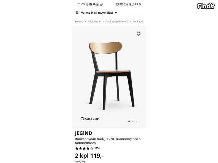 Jysks jegind köksstolar 4 st. Använt skick. Alla för 40e. Jyskin ruoka tuolit, käytetty kunto, kaikki 4 kpl 40e.