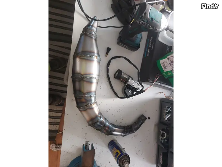 -Itse tehty ylävääntöinen pakoputki, vocan äänenvaimentajalle sopivalla laipalla, kysy ihmees lisää asiasta.