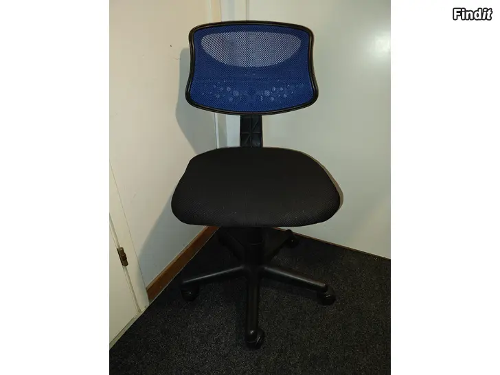 Myydään musta-sininen toimistotuoli. Yleisilme siisti, mutta joitain käytönjälkiä varmasti löytyy.