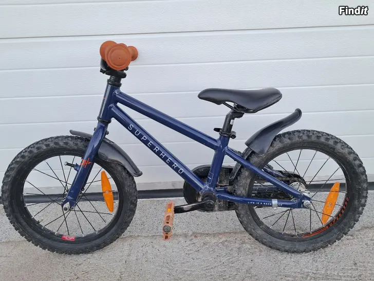 Serious Superhero barncykel 16 tum med fotbroms. Bra däck, passar även i terräng. Skråmor på ena trampan och sitsen, annars bra skick. Nypris 279e.