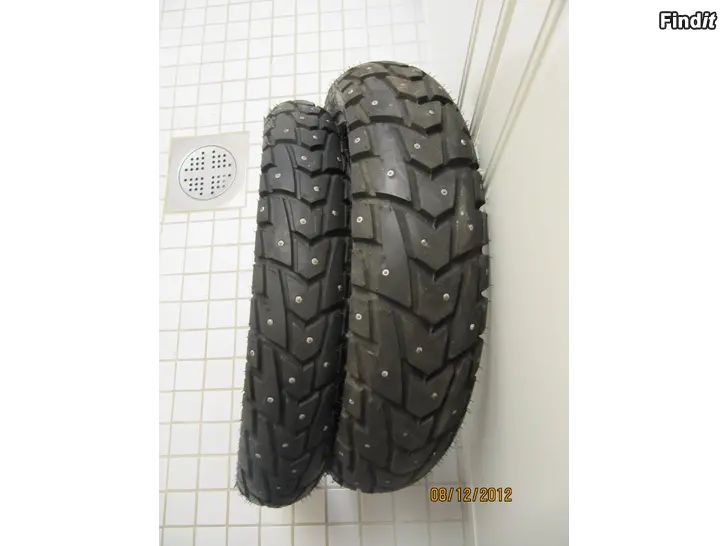 Nästan oanvända dubbdäck för moped, märke Sawa, storlek fram 100/80-17, bak 130/70-17.
