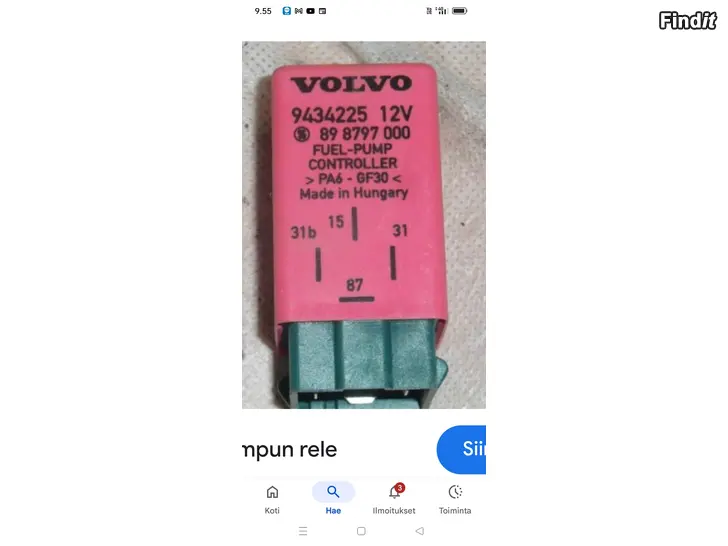 Volvo 850 1996 pensapumpun rele 9434225