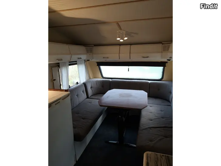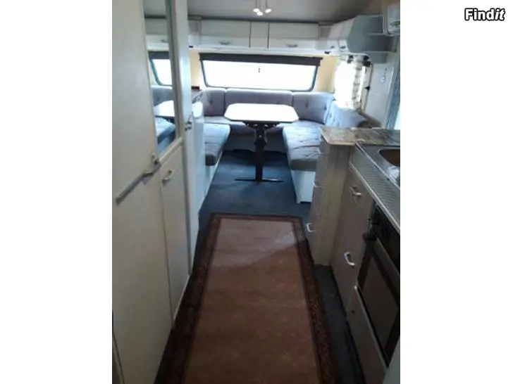 Fins ett 220v kylskåp mikro riktig vc bak i vagnen är det bäddat för dubbelsäng fram sittgrupp. Vagnen är ej besiktad men försäkrad.