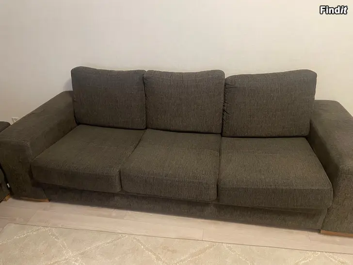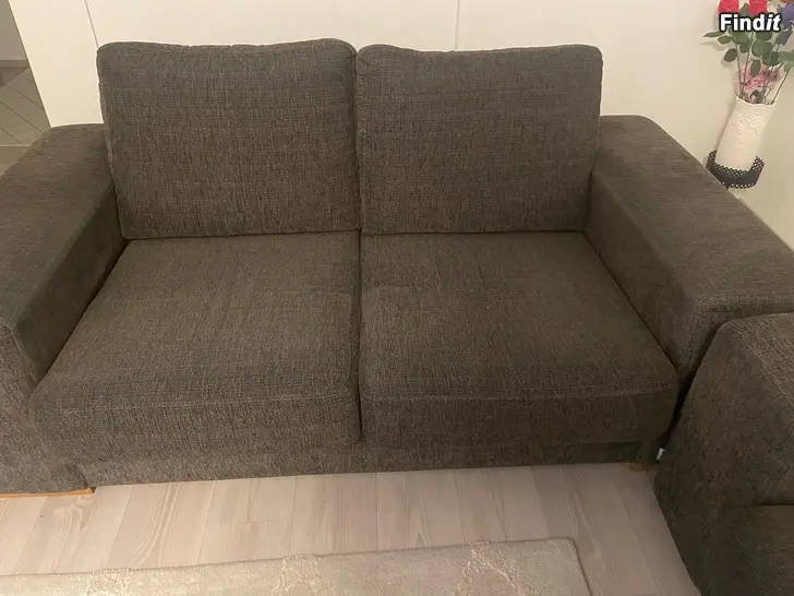 Fint skick på 2+3-sits soffa från Bellus med slitstarkt tyg och stabil stomme.