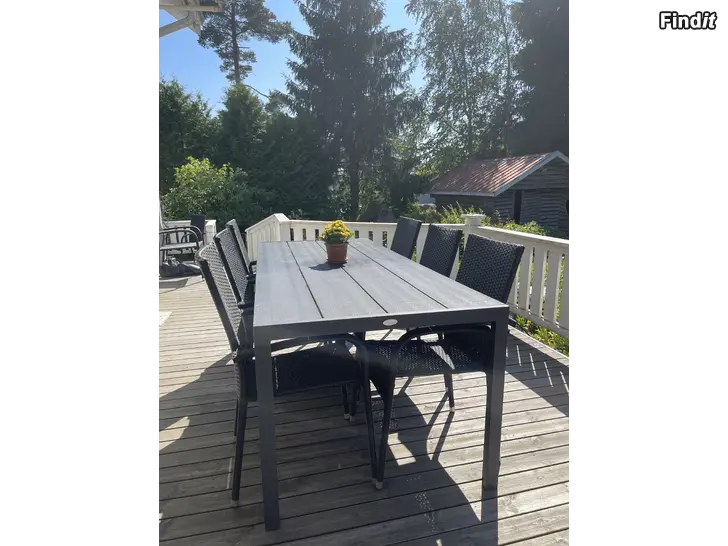 Utemöblemang i bra skick, bord + 6 stolar med tillhörande dynor.