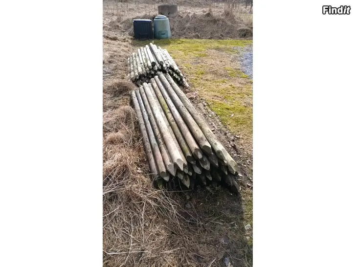 Ca. 100st. impregnerade stolpar. De flesta är 8cm i diameter och 2m långa, några är 5cm i diameter och 1,8m långa.