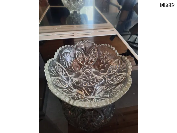 Vanha kristallinen kulho. Kork.12cm. Halk.20cm.