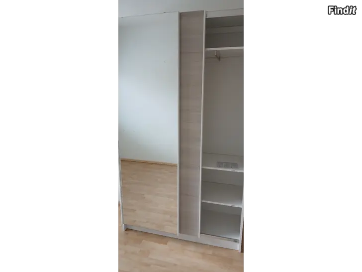Säljes garderob med skjutdörrar. En dörr med spegel, andra gråmelerad. Använd i ca 1,5 år. Avhämtas senast 29.3. Bärhjälp och transport ordnas av köparen.