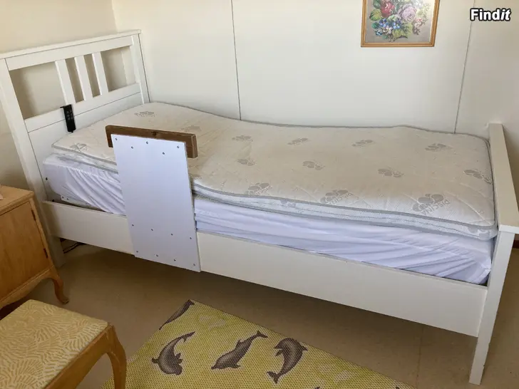 Mamma har flyttat till äldreboende och vi säljer bort en del överflödigt lösöre bl.a en motoriserad säng från IKEA. Sängens ålder cirka 10 år och den är helt fungerande. För närvarande har sängen ett hemmagjort uppresningsstöd men det kan lätt avmonteras vid behov. Sängen verkar tyvärr inte längre finnas i IKEA:s urval men som ny låg priset på denna modell inklusive madrass på drygt 600€. Sängen finns i Terjärv centrum. Avhämtning Sängen kan monteras i mindre delar. Begärt pris: 300€ / anbud.