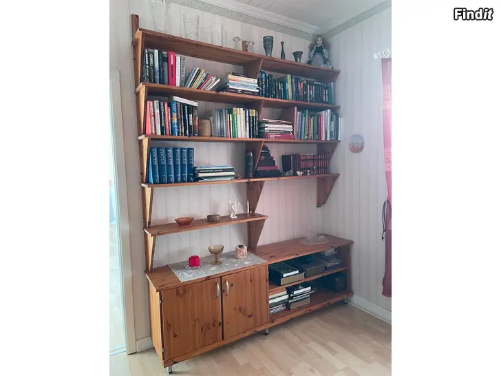 Betsad bokhylla i fint skick. Bredd 180cm, höjd 221 cm, djup 42cm.