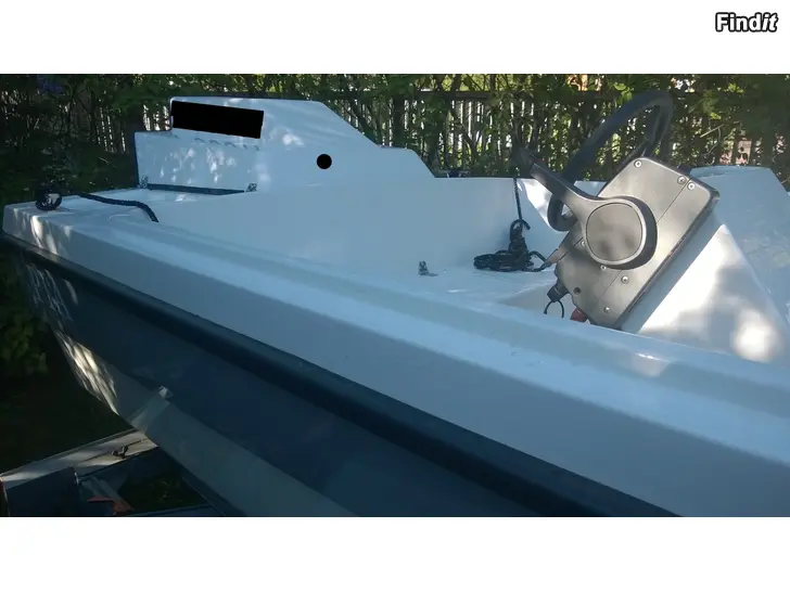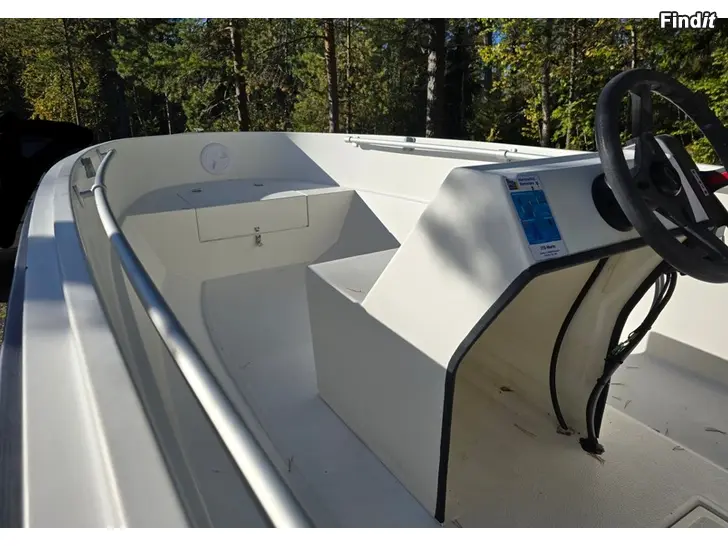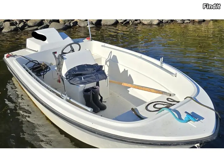 BÅT: Glasfiberbåt Finnark 460, årsmodell 2014 Tillverkad från Nautor form av Vene-Björndahl Ky Båten i toppenskick, välidigt lite använd. Länspump, styrpulpet med ratt och reglage. Åror och ankare ingår.