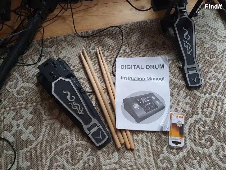 Settiin kuuluu rumpumoduli, useita padirumpua ja symbaalipadeja, bassorumpupadi pedaalilla, hi-hat pedaali ja kapulat.
