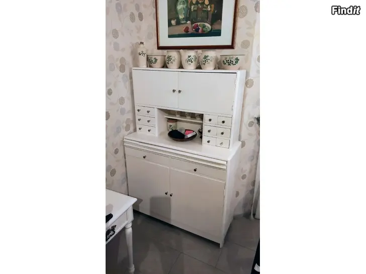 Renoverat och speciellt gammalt husmorsskåp från 1930/40-talet. Gedigen möbel! Bredd 100 cm, djup 40 cm och höjd 145 cm.