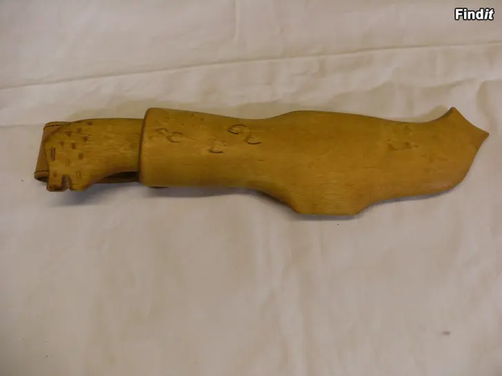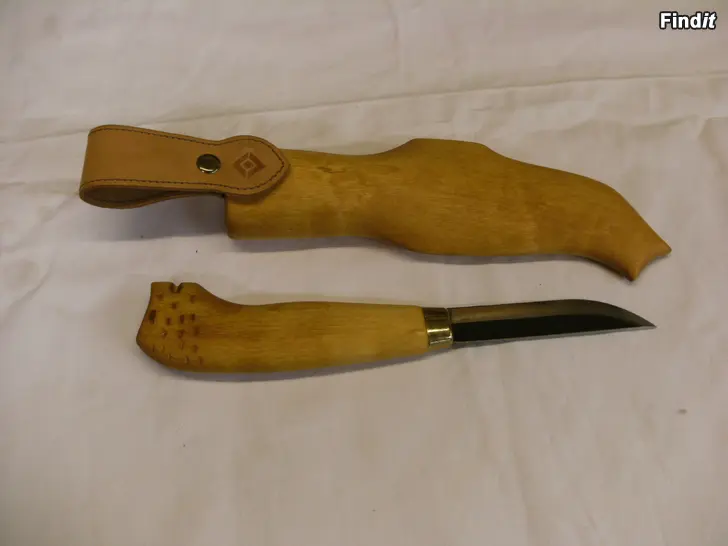 Handgjord finsk kniv. Oanvänd. Träskida. Knivens längd 25 cm