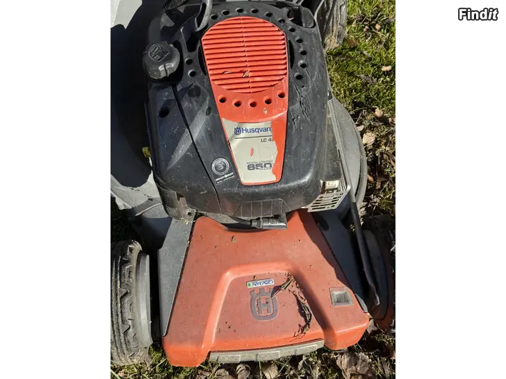 Husqvarna gräsklippare med uppsamlare. Startade bra förra sommaren då den var i användning. Drar frammåt men funkar lite sämre emellanåt.