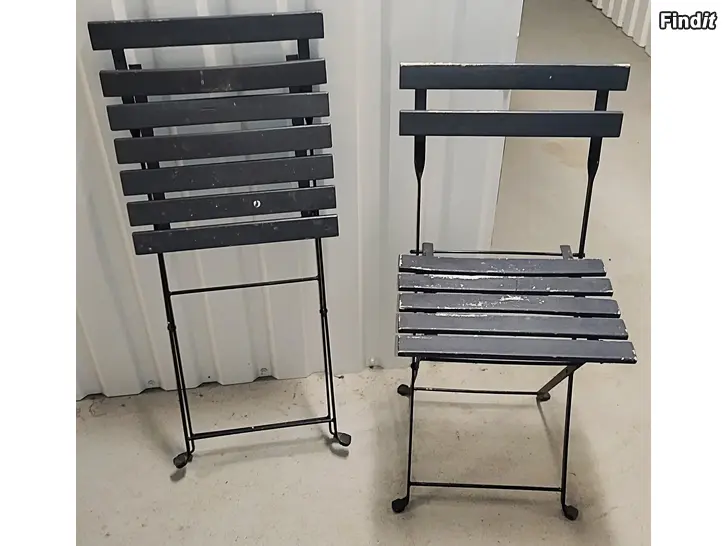 Siitä elämää nähneet taittotuolit pihalle tai parvekkeelle. Toisesta tuolista on jo tuollaista puunpalaa fiksattukin ja kyllähän nämä varmaan mielellään lisääkin entrausta vastaanottaisi, mutta ihan istuskelukunnossa ovat kuitenkin.