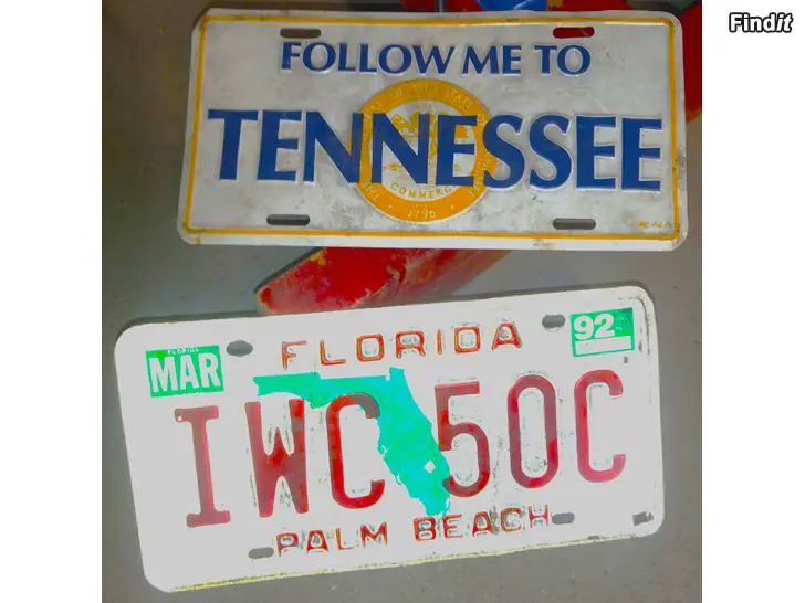 Siitä pari kilpeä niitä arvostavalle. Vähän harvinaisempi Florida Palm Beach rekkari- ja Tennessee sisustuskilpi keräilijälle, tai koristeeksi.