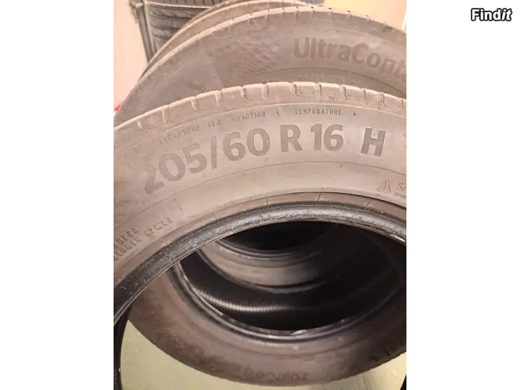 Continental ultracontact 205-60r16 sommardäck till salu. Ca 4mm kvar. Mera slitna på inner kanterna. Stekta v50 år 2023. Ena däcket är lappat,har fungerat bra.