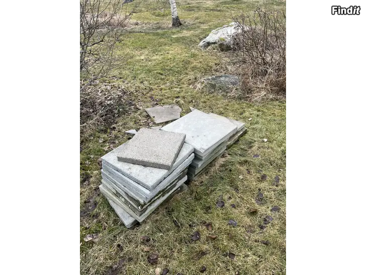 Ca 16 st hela 50x50x5 cm betongklimpar säljes för ett kaffepaket. Finns även några kantstötta. Allt eller inget om man kommer efter Fungerar perfekt under terass eller annan lätt byggnad. Fås för ett kaffepaket. Skall bäras ca 50 meter, bärhjälp kan fås. Finns i Kvevlax