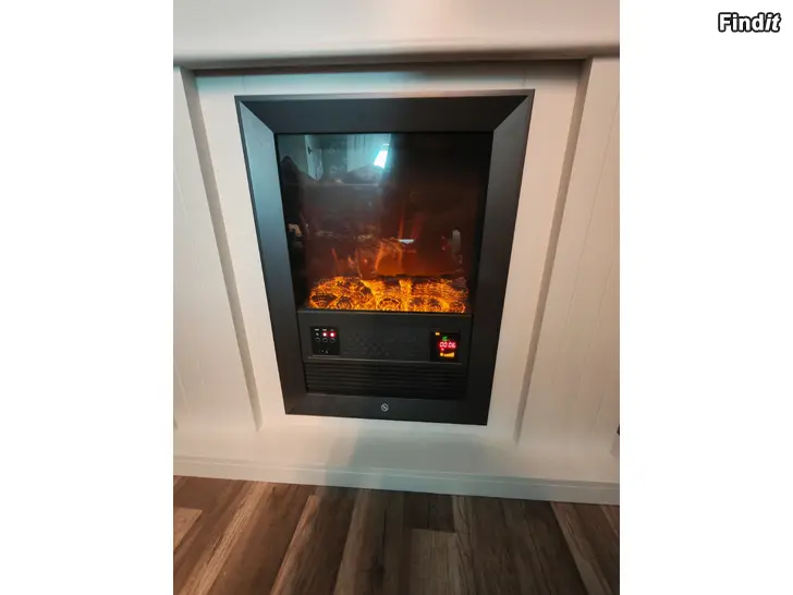 Inredningskamin. Som mysbelysning eller 1000 w värme. Termostat och överhettningsskydd. Fjärrkontroll och instruktioner på finska medföljer.