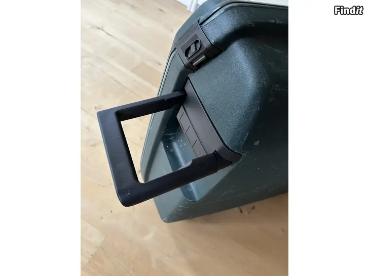 Säljer en Samsonite, mörkgrön, kappsäck/ resväska med draghandtag och hjul. Finns lås med kodnummer.