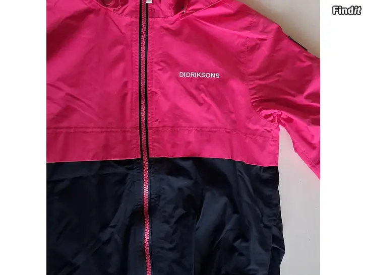 Myydään pinkki/tummansininen Didrikson kevättakki.