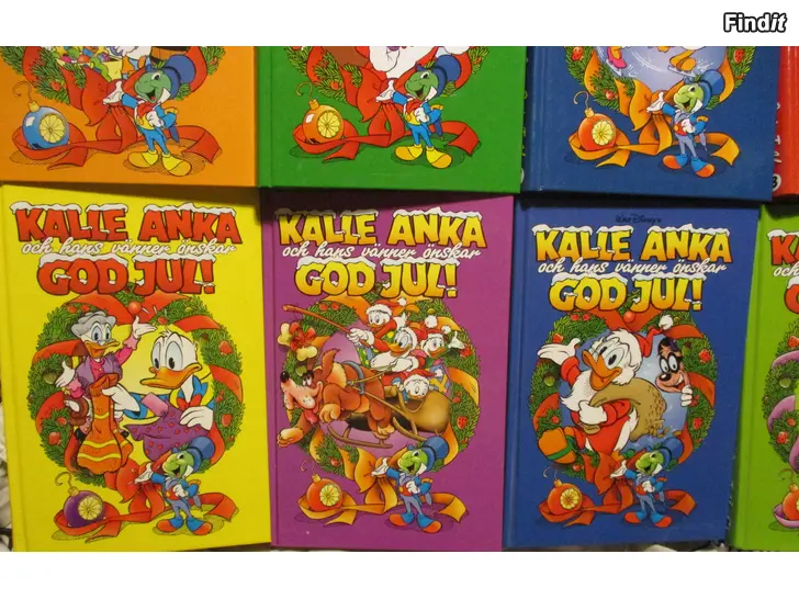Klassiska pocketarna med hård pärm Kalle Anka och hans vänner önskar god jul.