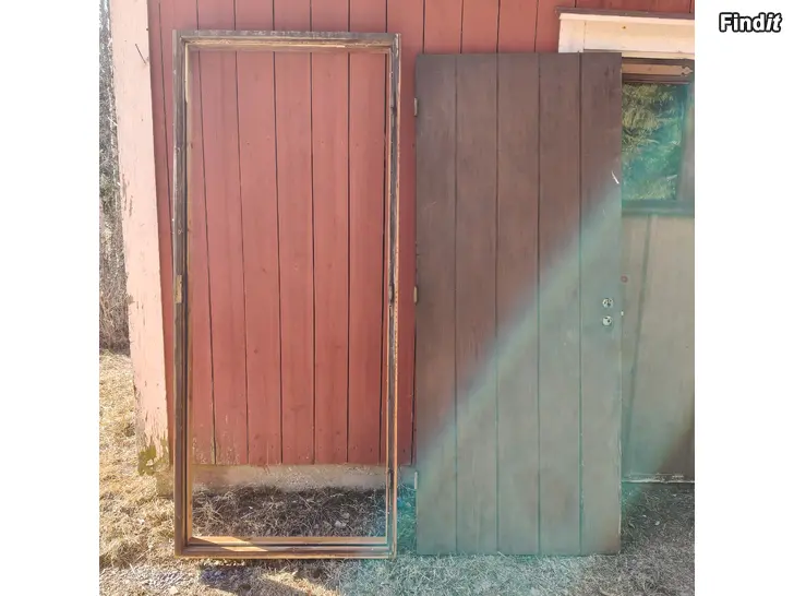 Säljes dörr och karm, den är i sämre skick men funkar bra som byggdörr.