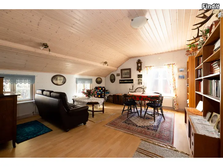 Bostadshuset är i 1½-plan och renoverades år 2006. Nedervåningen omfattar kök och vardagsrum i öppen och trivsam planlösning, ett sovrum, hall samt toalett. I bostaden finns även en traditionell Högfors vedspis som skapar en hemtrevlig atmosfär och fungerar som ett bra komplement till uppvärmningssystemet. Övervåningen omfattar sovrum, allrum samt badrum med bastu. Den totala bostadsytan uppgår till cirka 120 m² och den totala våningsytan är cirka 140 m².