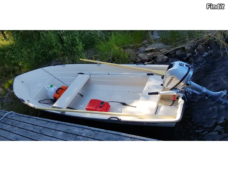 Säljes motorbåt Paro 405 årsmodell 2019 + motor Honda BVS 6A + trailer Aku BS600-L årsmodell 2018. Mycket gott skick, använd max 10 h, båt och trailer förvarats under tak samt motorn innomhus. Separat bränsletank 12 l samt åror och ankare ingår.