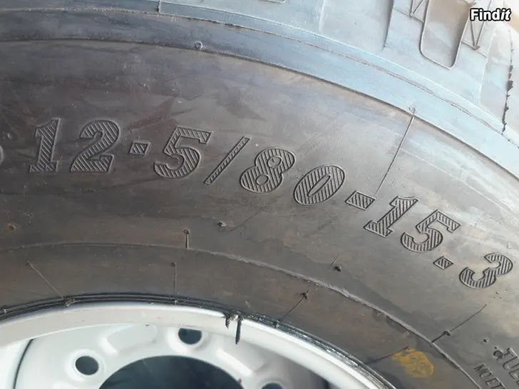 Myyd. uusia perävaunun pyöriä 12,5/80-15,3 14pr MRL, 6-pulttisilla vanteilla.