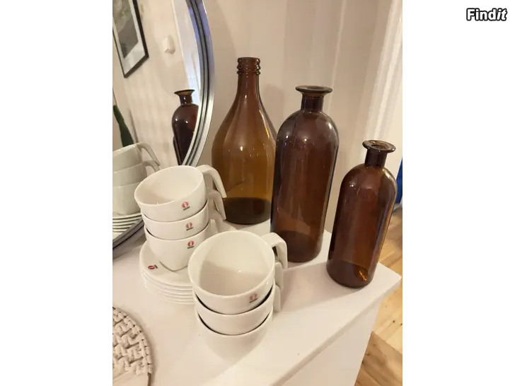 Finns bl.a.: byrå, spegel, flaskor, 6st Iittala Ego koppar+fat, lampa, ljusstakar, m.m.