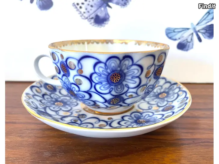 Lomonosov Imperial Porcelain Winding Twig / Bindweed kaffekoppar med fat