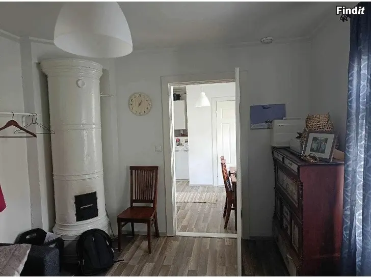 Lägenhet, 48 m2 på första våningen med egen ingång. - Både vedspis o kakelugn som båda är i bruksskick. - Golvvärme i hela lägenheten - Både disk- o tvättmaskin samt mikrovågsugn finns - Man kan parkera sin bil på gården - Hyra 710 + 25 euro för vatten/pers/mån - El o uppvärmning ingår i hyran Lägenheten är ledig.