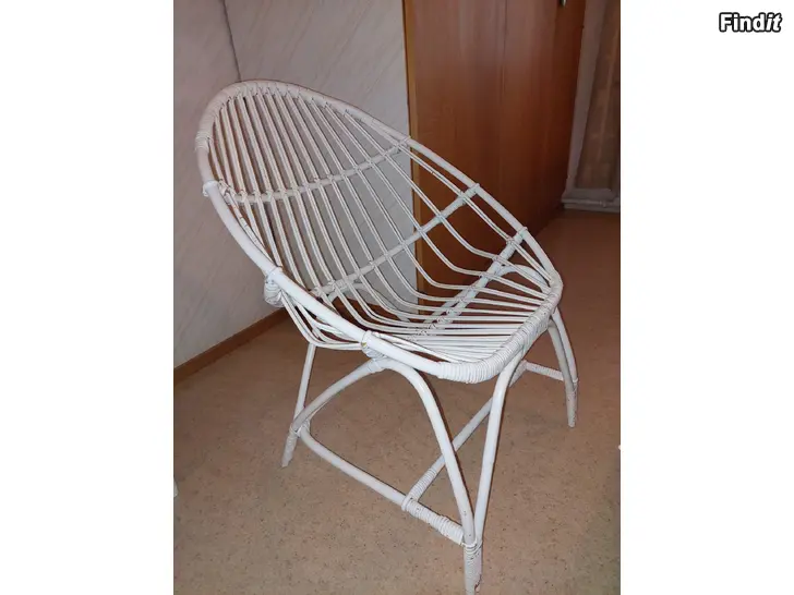 En fin och lätt vit rottingstol i gott skick. Stabil och luftig design som passar bra i vardagsrummet, sovrummet eller på inglasad balkong som en dekorativ möbel.