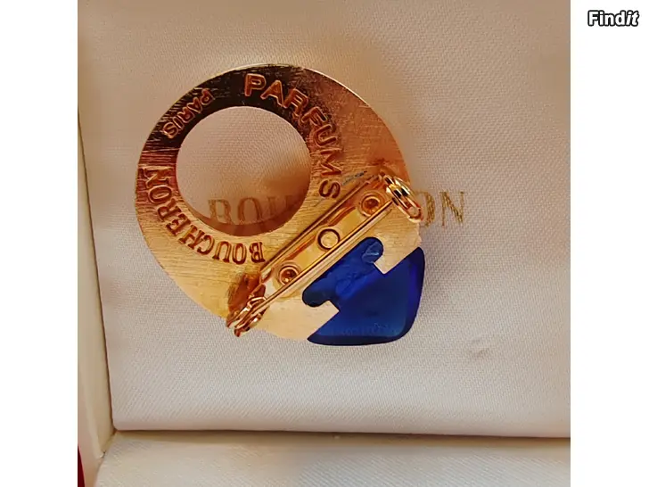 Sällsynt vintage-brosch från det franska lyxmärket Boucheron, designad som en elegant miniatyr av deras klassiska ringformade parfymflaska. Perfekt för samlare av exklusiva smycken eller som en unik detalj till din outfit.