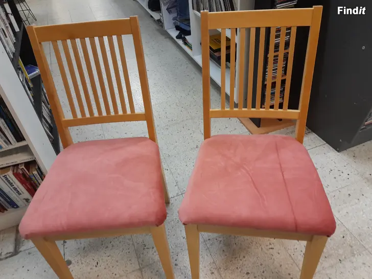Stol med rödrosa tygsits.
