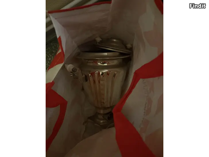 En korg med flera olika kopparpannor och liknande samt en samovar påsen.Hämtas från Vasa korgen medföljer ej. 200 för allt. Priset kan diskuteras.